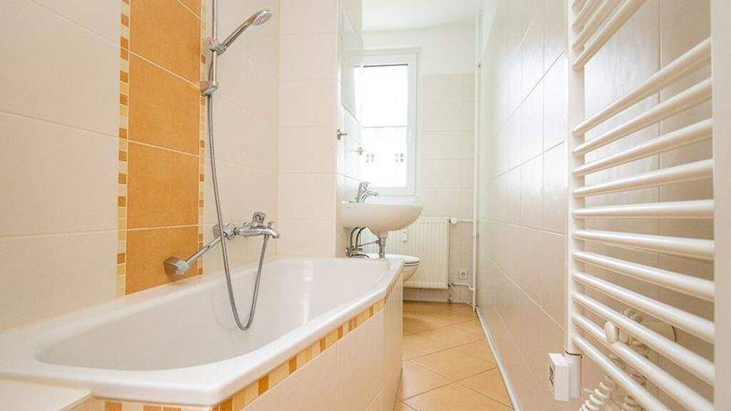 Nur ein paar Treppenstufen und schon ist man daheim- ein nicht zu unterschätzender Vorteil. Darüber hinaus hat die kleine Wohnung im Erdgeschoss mit zwei sonnigen Zimmern und einem schönen Südbalkon samt ungestörten Blick ins Grüne noch einiges mehr zu bieten. Die Küche, das Badezimmer und der Flur verfügen über ein Fenster. Die vorhandene Badewanne lädt zu ein paar entspannten Stunden ein. Ein schönes Sofa, eine gemütliche Sitzecke oder eine große Schrankwand? Im Wohnzimmer können Sie ihren individuellen Einrichtungsträumen freien Lauf lassen. Das benachbarte Schlafzimmer verspricht durch seine ruhige Lage angenehme Nächte. Die Zimmer sind alle mit einem pflegeleichten Bodenbelag ausgestattet. Zur Wohnung gehören außerdem ein Keller und eine Abstellfläche auf dem Dachboden.