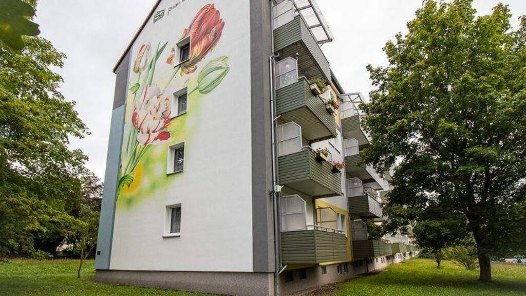 Das Gebäude wurde 1965 in industrieller Blockbauweise errichtet. Das sanierte Mehrfamilienhaus mit 4 Hauseingängen hat 4 Wohngeschosse mit je 2 Wohnungen pro Geschoss und ist vollständig unterkellert. Die Wohnungen werden zentral über Fernwärme beheizt. Moderne Gas Durchlauferhitzer in der Küche stellen schnell und bedarfsgerecht warmes Wasser bereit. Zum Kochen wird Gas verwendet. In jeder Wohnung ist mindestens ein TV Kabelanschluss, ein Glasfaseranschluss und eine Telefonanschlussdose vorhanden. Alle Wohnungen haben einen Balkon, der zur Südseite ausgerichtet ist. Im Spitzboden sind der Wäschetrockenboden und der Kammerbereich untergebracht. Für einen hohen Sicherheitsstandard bei einfacher Handhabung sorgt das elektronische Schließsystem (Paco-Clip) für die Haustür. Die Fassade der Gebäude ist geputzt und mit einem Fassadenvollwärmeschutz versehen.