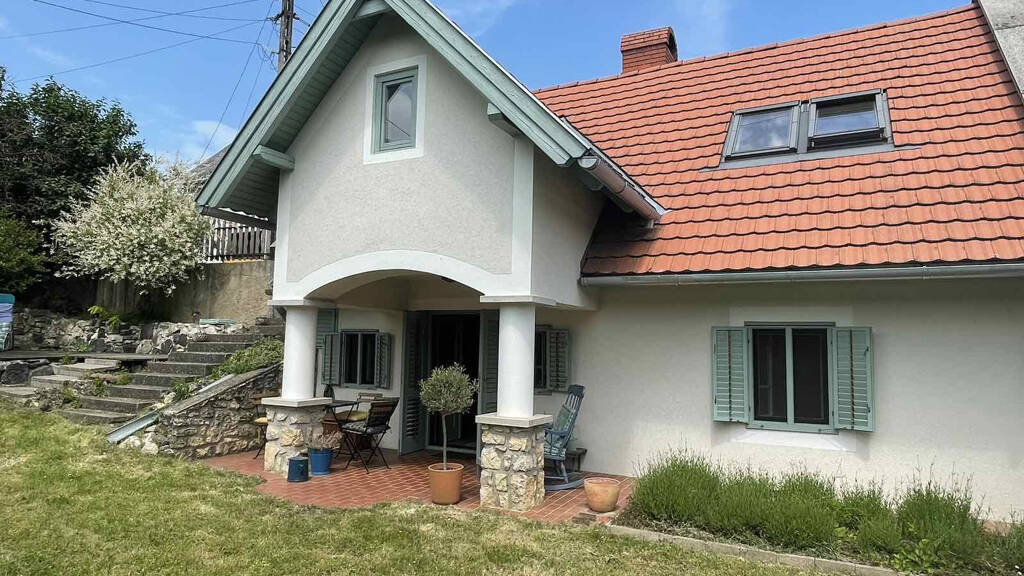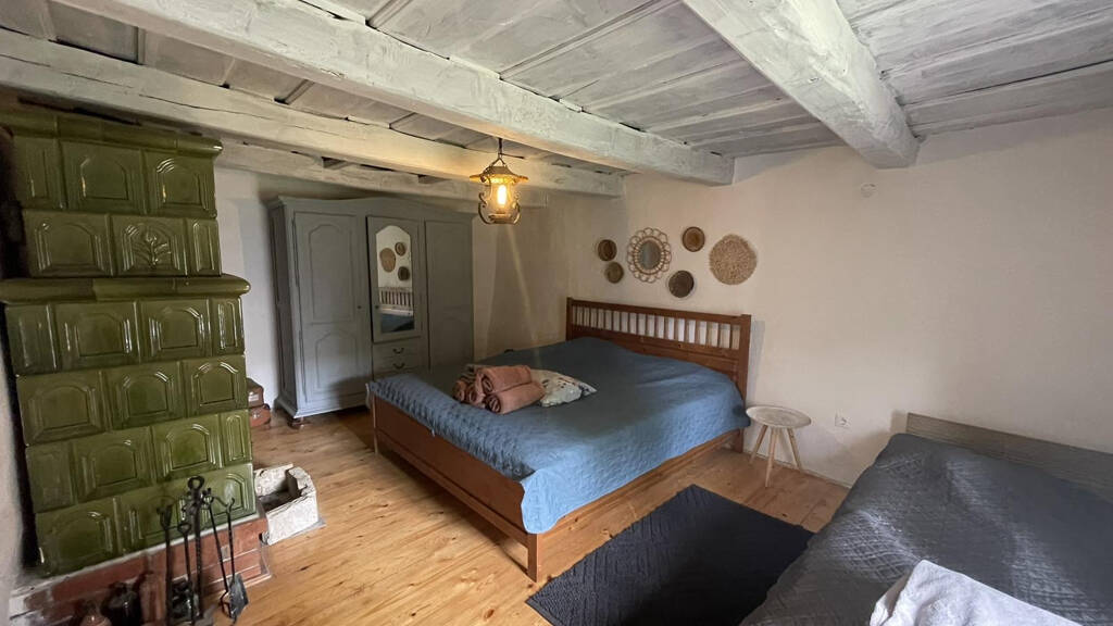 Schon die Fassade ist einladend und beim Betreten empfängt Sie eine angenehm kühle und gemütliche Atmosphäre. Ein perfektes Zusammentreffen von Alt und Neu. Die Küche und das Esszimmer befinden sich im selben Bereich, von hier aus gelangt man in das Badezimmer und das große Wohn-/Schlafzimmer. Dort befindet sich auch ein Kachelofen. Die Wohnung im Obergeschoss ist über eine steinerne Außentreppe zu erreichen, und die moderne, neue Dachinstallation ist dem Stil des Gebäudes treu geblieben.