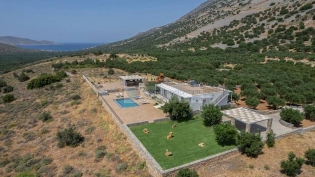 Darüber hinaus gibt es drei Schlafzimmer und zwei Badezimmer mit Duschen, eines davon im Innenbereich. Es verfügt über Solarwarmwasserbereiter, Zentralheizung mit Erdgas, Kamin, Klimaanlage, Alarmanlage mit Kameras und Satellitenfernsehen. Diese prächtige Villa steht auf einem 4.136 m² großen Grundstück und ist von einem üppigen Garten mit 50 Olivenbäumen, Weinbergen und verschiedenen anderen Pflanzen umgeben.