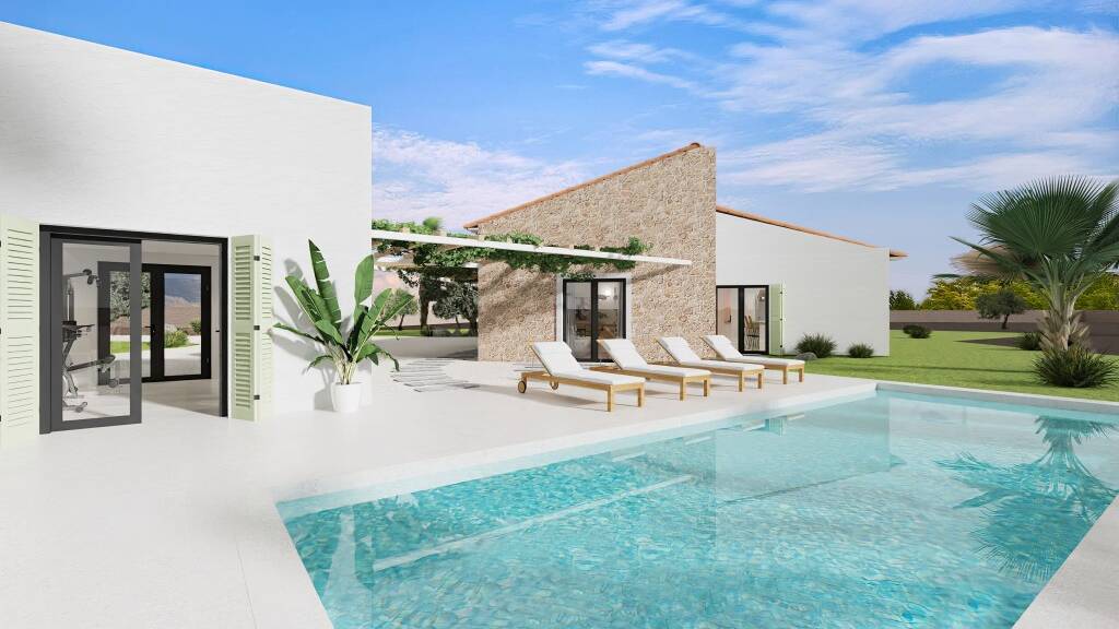 Dieses durchdacht konzipierte Haus ist auf die Bed?rfnisse einer modernen Familie zugeschnitten. Es wird unter Verwendung hochwertiger Materialien und der neuesten Technologie f?r eine effiziente Klimatisierung und Isolierung gebaut. Die Villa hat ein nach S?den ausgerichtetes Grundst?ck und erstreckt sich ?ber eine einzige Etage mit vier Schlafzimmern, jedes mit eigenem Bad, sowie einem B?robereich. Im Au?enbereich finden Sie einen 30 m2 gro?en Swimmingpool.
