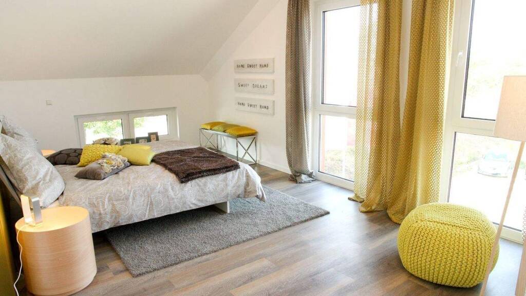 Lass dich vom Charme des Home 5 inspirieren. Das großzügige, offene Raumdesign bietet reichlich Möglichkeiten, um deinen persönlichen Wohnstil zu realisieren. Im Erdgeschoss vereinen sich Wohnbereich, Essbereich und Küche zu einer harmonischen Einheit. Im obersten Stockwerk hält das zeitgemäße Einfamilienhaus drei Schlafzimmer sowie ein geräumiges, lichtdurchflutetes Badezimmer bereit. Mit einer Gesamtfläche von nahezu 144 m², verteilt auf vier Zimmer und zwei Etagen, finden Familien im Home 5 ihr ideales Zuhause.