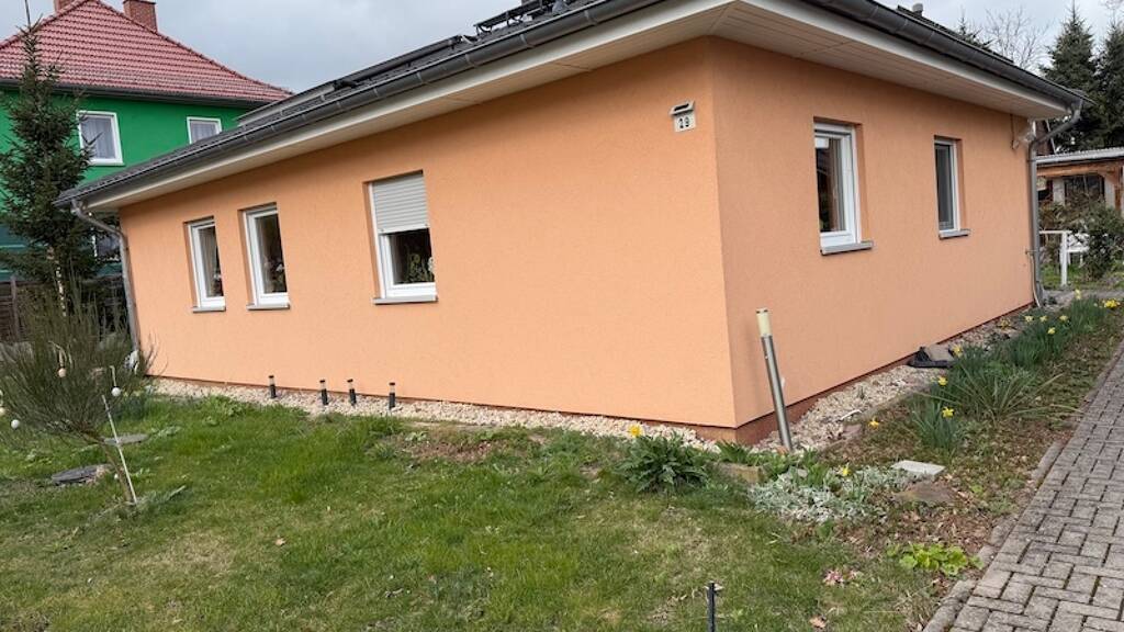 Dieser gepflegte Bungalow aus dem Jahr 2012 überzeugt durch seine durchdachte, barrierefreie Bauweise und bietet auf 86 m² Wohnfläche ein komfortables Zuhause mit 3 Zimmern, darunter 2 Schlafzimmer sowie einem Bad. Die moderne Gasheizung sorgt für eine zuverlässige und effiziente Wärmeversorgung, während der gemütliche Kaminofen an kühlen Abenden für eine behagliche Atmosphäre sorgt.