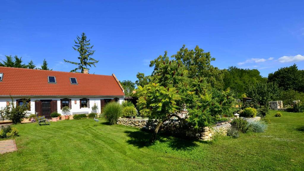 Im westlichen Bakony, im ruhigen Dorf Ganna, steht ein außergewöhnliches Anwesen zum Verkauf. Das historische Bauernhaus von 1911 mit seinen charakteristischen Arkaden wurde liebevoll saniert und 2014 erweitert. Heute bietet es rund 220 m2 Wohnfläche.