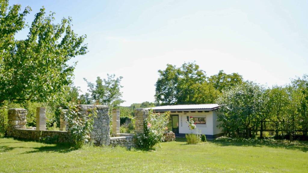 Das Grundstück von ca. 6000 m2 bietet vielfältige Nutzungsmöglichkeiten: Werkstatt und Garage, Holz- und Geräteschuppen, ein fast fertiges Saunahaus, ein vorbereiteter Platz für einen Whirlpool, ein Steingarten mit Badefass, ein Emu-Park mit Teich sowie zahlreiche Obst- und Nussbäume, alte Weiden und Reben. Ein 30 m tiefer Brunnen liefert kristallklares Wasser in unbegrenzter Menge.