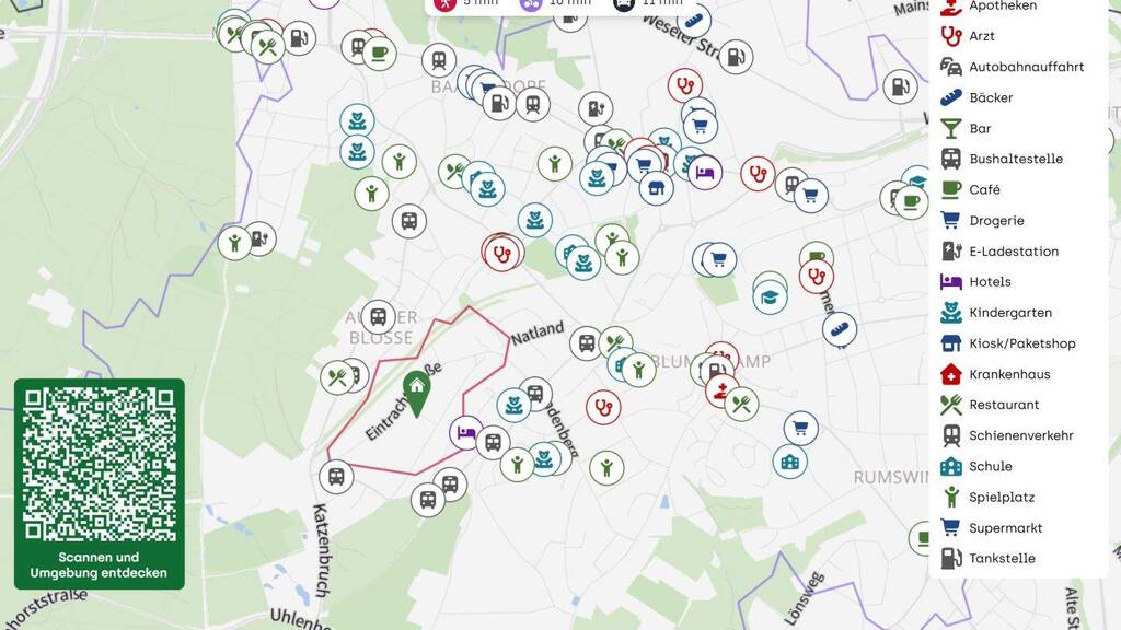 Die umliegende Nachbarschaft ist geprägt von einer ruhigen und familienfreundlichen Atmosphäre. In unmittelbarer Nähe finden sich zahlreiche Einkaufsmöglichkeiten, Restaurants, insbesondere im nahe gelegenen Dörfchen Saarn, Schulen und Kindergärten, die den täglichen Bedarf abdecken. Die gute Infrastruktur ermöglicht es den Bewohnern, alle wichtigen Einrichtungen bequem zu Fuß oder mit dem Fahrrad zu erreichen.