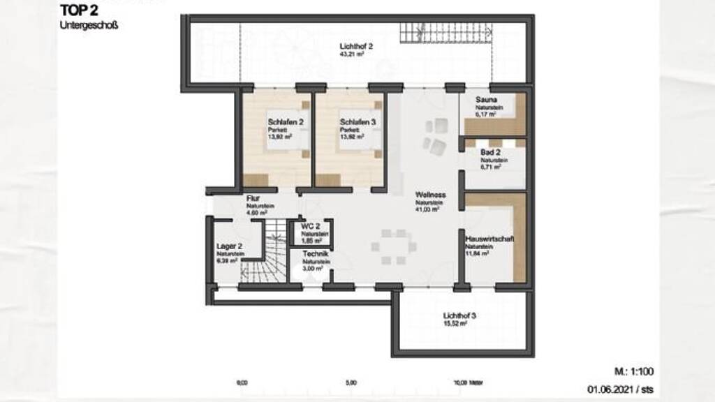 Die Gartenmaisonette Wohnung TOP 2 stellt dabei das Highlight des Projekts dar. Aufgeteilt auf zwei Ebenen, verfügt diese Wohnung über drei Schlafzimmer und zwei Badezimmer, die höchste Privatsphäre und Komfort bieten. Das integrierte Bad und der integrierte Ankleideraum im Schlafzimmer Nr. 1 bieten zusätzlich Funktionalität und einen Hauch von Luxus. Der weitläufige Wohn- und Essbereich lädt zu gemütlichen Stunden und Familientreffen ein. Zwei zusätzliche Zimmer im Keller bieten Raum für vielseitige Verwendungsmöglichkeiten. Ein wahres Glanzstück ist der geplante Wellnessbereich mit eigener Sauna, der für Entspannung und Wohlbefinden sorgt.
