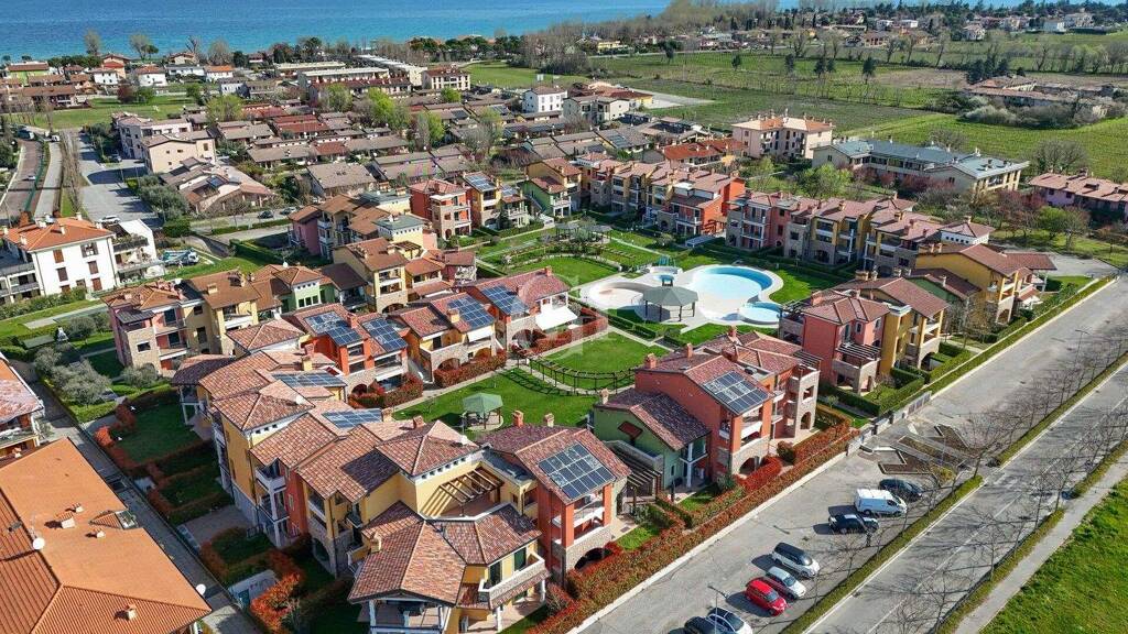 Die Umgebung vereint Ruhe und Funktionalität und bietet dank des grünen und privaten Kontextes eine hohe Lebensqualität, während gleichzeitig eine schnelle Anbindung an die wichtigsten Orte des unteren Gardasees gewährleistet ist. Das historische Zentrum von Sirmione, bekannt für seine Thermalbäder und die charakteristische Scaligerburg, ist in wenigen Minuten erreichbar.