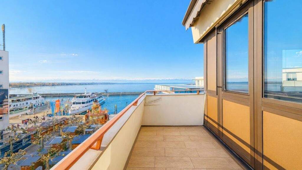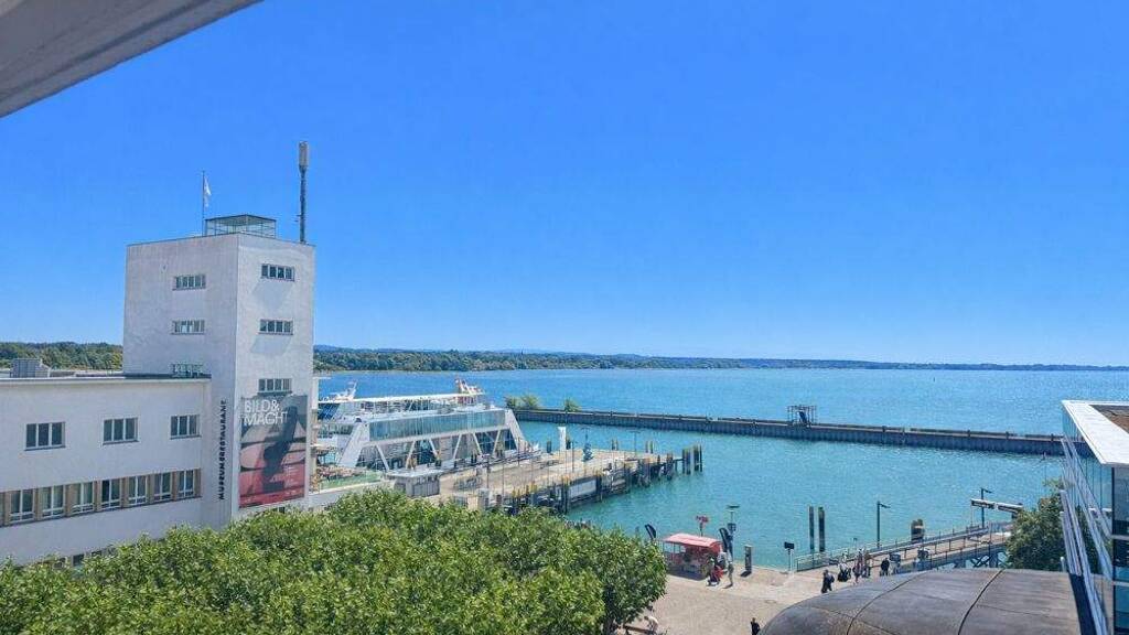 Das Highlight ist ohne Zweifel der unverbaubare Blick: Drei Balkone mit Südausrichtung eröffnen eine beeindruckende Sicht auf den Hafen, den Bodensee sowie die Alpen. Hier verschmelzen urbanes Leben und Seepanorama auf seltene Weise.