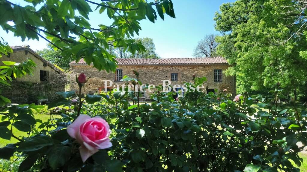 The property is surrounded by woods and meadows for horses. You reach it via a stony driveway. It has six distinct buildings. The farmhouse, which is the main dwelling, is divided into two twin buildings that adjoin each other. One is the owner's home and the other one is a gite. The walls are made of stone and cob filler. The gable roofs are covered with barrel tiles. Five outbuildings stand nearby: four stables built in a row and a little building that houses a traditional bread oven. They are also made of stone and crowned with tiled gable roofs.