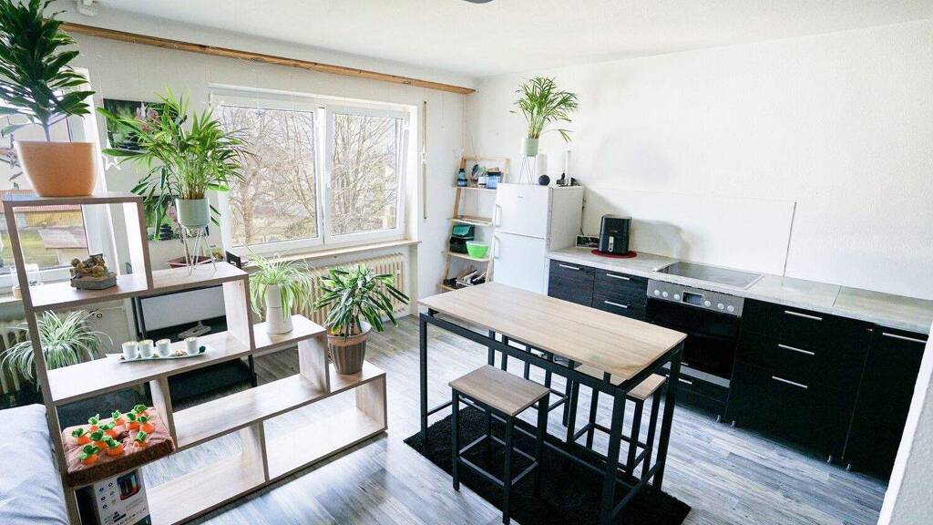Diese gut geschnittene und angenehm belichtete 1-Zimmer-Wohnung befindet sich im zweiten Obergeschoss eines massiv erbauten Mehrfamilienhauses aus dem Jahr 1972 mit insgesamt neun Wohneinheiten.