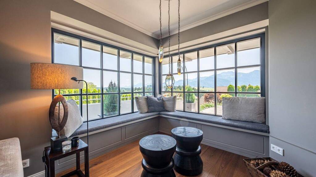 Entstanden ist eine Immobilie, die die Qualität eines etablierten Baukörpers mit dem Komfort und der Technik eines Neubaus verbindet. Besondere Aufmerksamkeit verdient die aufwendig realisierte Terrassierung des Hanggrundstücks: Sie schafft nicht nur Raum für einen großzügigen Pool, sondern öffnet durch eine durch dachte, intelligente Bepflanzung - den freien Blick auf das beeindruckende Alpenpanorama.