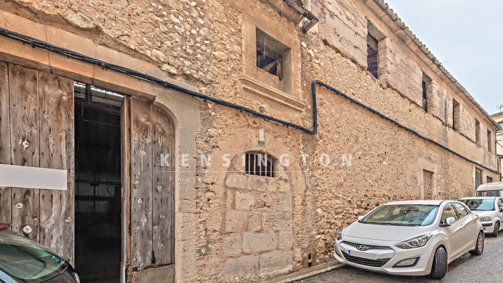 Dieses interessante Anwesen aus dem Jahr 1870 mit Zugang von 2 Straßen, die endlose Möglichkeiten bieten, befindet sich im Herzen des wunderschönen Dorfes Porreres, Mallorca.
