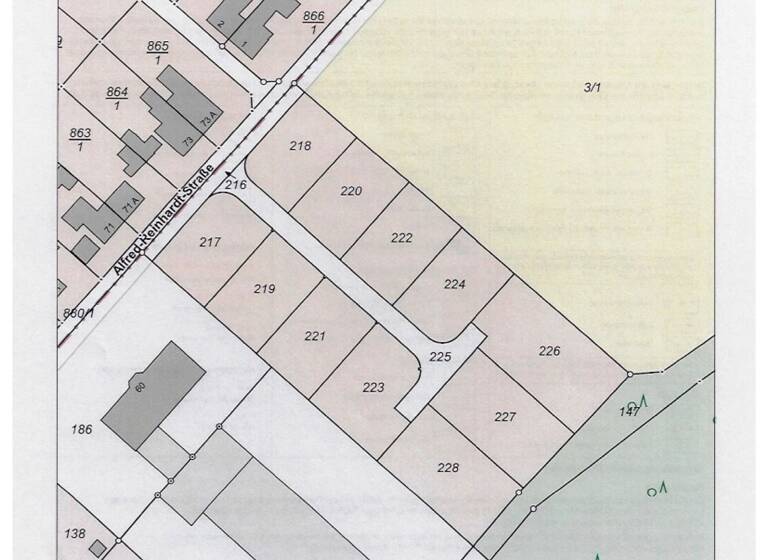 In der Alfred-Reinhardt-Straße errichten wir z. Z. ein kleines Wohngebiet mit privater Anliegerstraße für insgesamt 11 Einfamilienhäuser. Die Arbeiten zur Erschließung sind bis auf die noch herzustellende Pflasterung und Bordsteineinfassung bereits erfolgt, die ersten Häuser befinden sich im Bau.