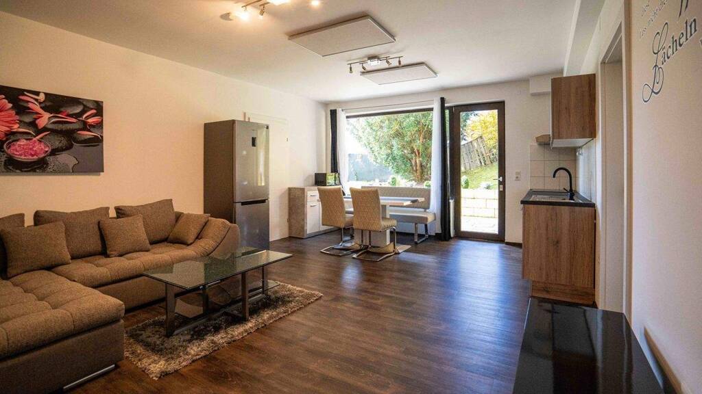 Die Wohnfläche von rund 50 m² wird durch eine großzügige, etwa 20 m² große Terrasse ergänzt, die perfekten Raum für Erholung im Freien bietet. Innen erwartet Sie eine modernisierte Ausstattung mit neuen Wasser- und Stromleitungen, einer zeitgemäßen Einbauküche sowie hellen Laminat- und Fliesenböden.