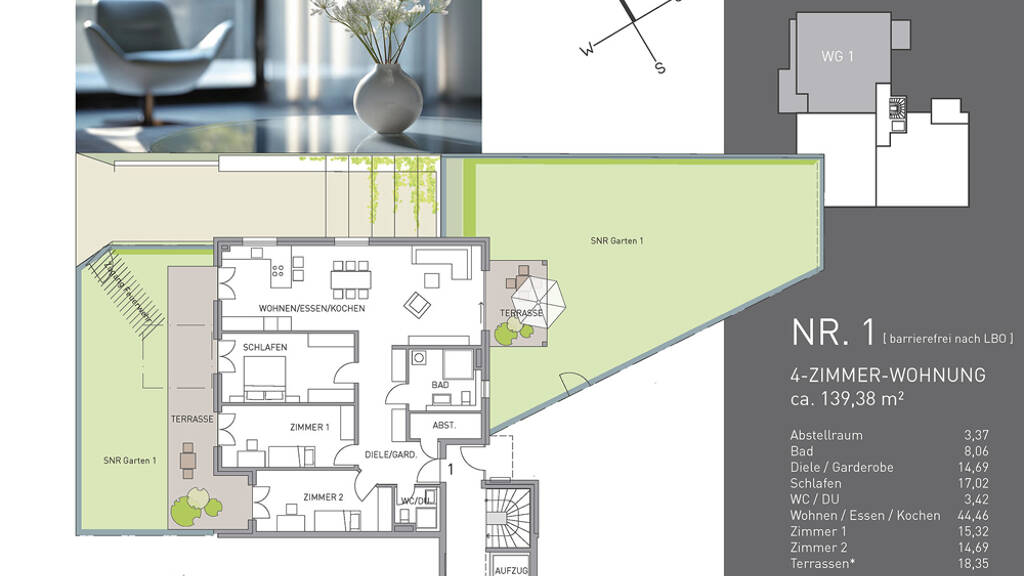 . Landhausdielen in Eiche . Hochwertige Fliesen in Bad und Küche . Fußbodenheizung mit Einzelraumregelung & Kühlungsfunktion . Aufzug begehbar von der Tiefgarage . Elektrische Rollläden / Jalousien . Effizienzhaus 55 . Luft-Wärmepumpe . Photovoltaikanlage . Vollwärmeschutz . 3-fach Verglasung uvm.