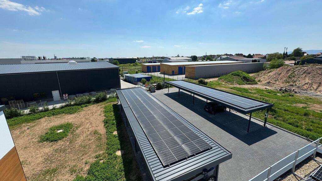 Photovoltaik auf Dach und Carports, ergänzt durch einen