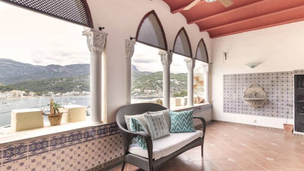 Eine großzügige Veranda lädt dazu ein, den atemberaubenden Blick auf den Hafen und die umliegende Landschaft zu genießen.