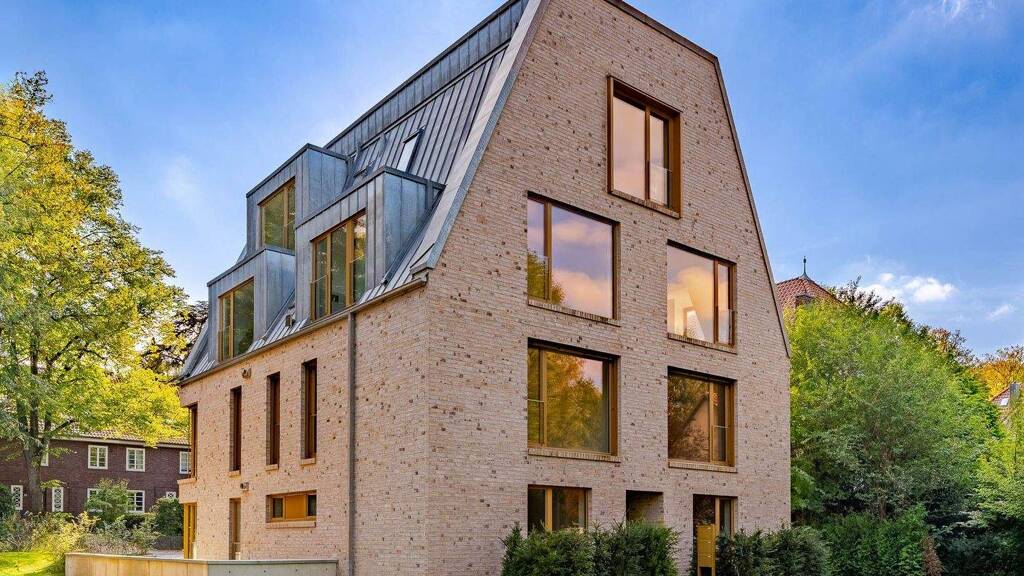 Zu der Wohnung zählen neben fünf attraktiven Zimmern nicht nur zwei Badezimmer, sondern auch ein separates Gäste-WC. Das Objekt lässt sich bequem über einen Fahrstuhl erreichen. Eine Besonderheit ist, dass es nicht nur einen 18qm großen Balkon gibt, sondern auch eine große Dachterrasse mit weitem Blick in jede Richtung. Die Wohnung ist bereits mit einer hochwertigen Designerküche der Marke Next125 ausgestattet. Auch in dem Keller finden Sie einen weiteren Aufbewahrungsort. Daneben können Tiefgaragenstellplätze für jeweils 35.000 Euro zusätzlich erworben werden. Die Ausstattung ist sehr hochwertig. Die Wohn- und Schlafräume sind mit Parkett versehen. Die Bäder sind mit großformatigen Fliesen italienischer Hersteller gefliest. Die Sanitärobjekte sind von namenhaften Herstellern. Die besonders großen Holzfenster geben den Räumen eine besondere Helligkeit und erlauben den Bewohnern großzügige Blicke in die grüne Umgebung Volksdorfs. Die Innentüren sind 223,5 cm hoch und haben innenliegende Tectus-Bänder und einen stumpfen Anschlag. Über eine bequeme Vollholztreppe aus Eiche kommt man zunächst vom Koch- und Essbereich in den Wohnbereich. Über eine weitere Treppe gelangt man auf die einmalige Dachterrasse, die zum sitzen und langen Verweilen mit Familie und Freunden einlädt. Aufgrund der einzigartigen Kubatur des Hauses schaut man von der Dachterrasse über ganz Volksdorf und genießt da oben absolute Privatsphäre.