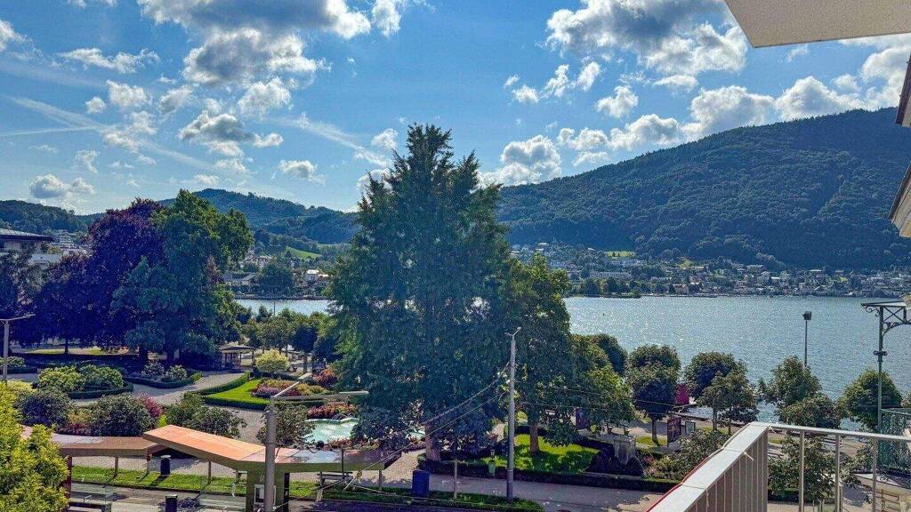 Der vordere Balkon bietet einen malerischen Blick in Richtung Innenstadt und einen schönen, seitlichen Blick auf Esplanade, Traunsee und Franz Josef-Park. Dieser kleine, entzückende Park befindet sich unmittelbar gegenüber. Der Brunnen und die liebevoll angelegten Blumenbeete machen diesen Platz äußerst attraktiv. Ein weiterer Balkon befindet sich auf der rückwärtigen Wohnungsseite und kann sowohl vom Schlaf- als auch Badezimmer betreten werden.