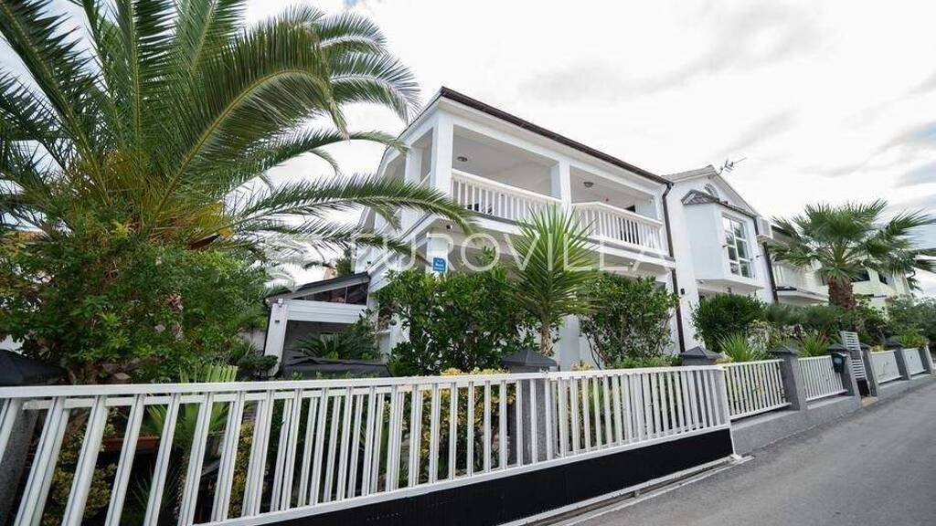 Zadar, Vir, lijepa, prostrana kuca na mirnoj lokaciji na otoku Viru.Sastoji se od dva stana sa komfornim rasporedom prostorija i svim sadrzajima potrebnim za svakodnevni zivot.Stan u prizemlju sastoji se od dvije spavace sobe, kupaonice, kuhinje, blagovaonice i dnevnog boravka te terase na kojoj se nalazi jacuzzi, idealnoj za opustanje i uzivanje.Unutarnjim stepenistem dolazi se na kat gdje se nalazi stan sa cetiri spavace sobe, dvije kupaonice, kuhinjom, blagovaonicom i dnevnom boravkom te dvije prostrane terase, a s jedne se pruza pogled na more.Kuca je klimatizirana, provedeno je i podno grijanje na vodu u cijeloj kuci.Postavljeni su i solarni paneli te dodatno solarno za toplu vodu koje se nalazi u garazi/pomocnom objektu povrsine 25 m2. Ovdje se nalazi i dodatna kupaonica.Dvoriste je prekrasno uredeno te obiluje zelenilom i mediteranskim drvecem koje stvara poseban ugodajOva nekretnina je savrsen spoj komfora i funkcionalnosti, pogodna za koristenje tokom cijele godine ili kao investicija u turizmu.Udeljenost od mora i plaze iznosi svega 70ak metara.Uredno vlasnistvo.Stojimo Vam na raspolaganju za vise informacija.... Vise na eurovilla.hr, ID: 385600
