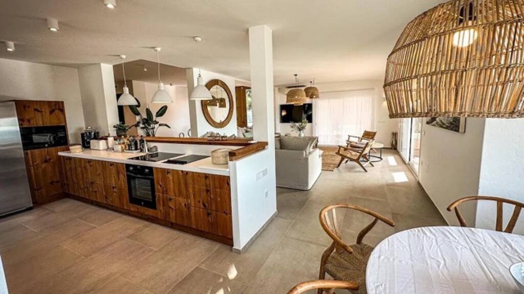 The majestic residence of Mirlo Blanco, with its capacity to comfortably accommodate up to 14 people, has been meticulously designed and decorated to offer a truly unforgettable experience. Every corner of this house radiates a rustic and authentic charm, where warm and soft tones harmoniously intertwine with natural elements such as wood and natural fibers, creating a cosy and relaxing atmosphere that invites you to immerse yourself in the serenity of the island.