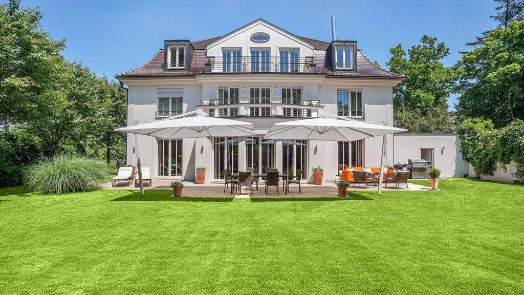 In einer absolut ruhigen Bestlage von Solln auf einem wunderschön eingewachsenen Grundstück liegt dieses geschmackvolle Villenanwesen, das so viele Wünsche unter einem Dach vereint. Klassische Architektur, erlesene Materialien, beachtliche Raumhöhen, großzügige Räume sowie ein exzellenter Erhaltungszustand charakterisieren dieses wunderschöne Familienhaus. Im Erdgeschoß beeindrucken insbesondere die Räumlichkeiten, die zum sonnigen Garten ausgerichtet sind. Das gemütliche Kaminzimmer, der ca. 45m² große Wohnbereich sowie der Speisesalon bilden eine beeindruckende Zimmerflucht, wobei auf Wunsch die Räume auch durch Schiebetüren abgetrennt werden können. Massives Eichenparkett in Fischgrätoptik verlegt, hochwertige Schreinereinbauten, ausgesuchte Wandfarben sowie der imposante Kamin tragen zu einer absoluten Wohlfühlatmosphäre bei. Die Küche läßt nicht nur die Herzen ambitionierter Köche höher schlagen, sondern bietet auch für z.B. ein kleines Frühstück im familiären Kreis eine heimelige Sitzecke. Die klare Aufteilung setzt sich im Obergeschoss fort. Neben dem ca. 75m² großen Masterbereich (Schlafzimmer, Bad ensuite und Ankleide) mit Zugang auf den Südbalkon befinden sich auf dieser Ebene zwei Kinderzimmer mit eigenem Bad. Eine Etage höher fasziniert das bis unters Dach offene Studio mit Südbalkon. Außerdem bietet sich das weitere Schlafzimmer mit Bad ensuite ideal als z.B. separater Gästebereich an. Neben den üblichen Lager- und Hauswirtschaftsräumen (natürlich in entsprechender Großzügigkeit) befindet sich im Untergeschoss ein toller, über 30m² großer Hobbyraum (mit Starkstromanschluss für eine mögliche Sauna). Zudem sind hier bereits sämtliche Zu- und Ableitungen für ein potentielles Bad vorhanden, so daß dieser Bereich auch ideal z.B: als Au-Pair-Zimmer nutzbar wäre. Daneben bietet der großzügige Vorraum im Treppenhausbereich ausreichend Platz für eine Tischtennisplatte. Sollte der Wunsch nach einem Außenpool bestehen, liegen Wasser- sowie Heizleitungen an der Kelleraußenwand und für eine entsprechende Beheizung ist die bestehende Heizungsanlage bereits ausreichend dimensioniert.