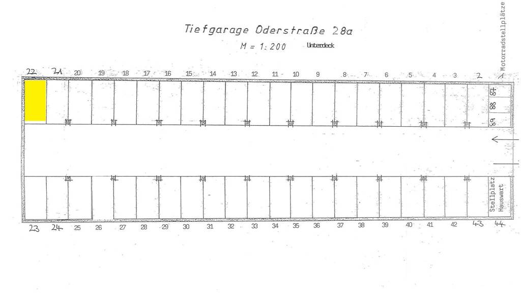 Es stehen aktuell 2 Kfz-Stellplätze für a 50,00 € / Monat zur Vermietung (siehe gelb markiert auf Übersichtsplan).