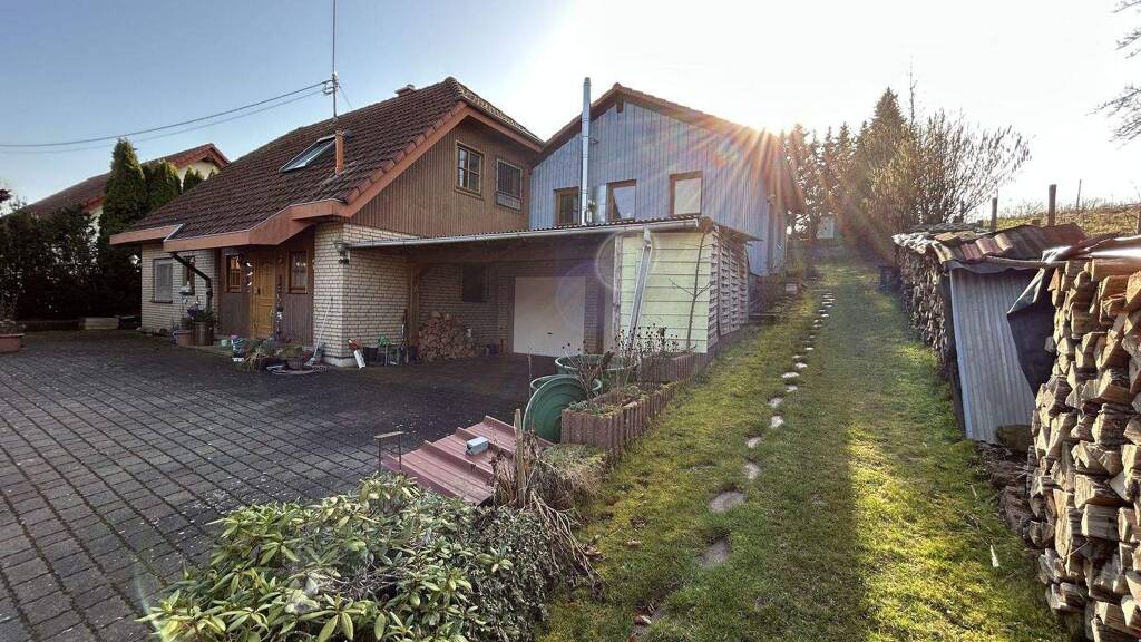 Dieses gepflegte Einfamilienhaus aus dem Baujahr 1999 befindet sich in der ruhigen Ortsgemeinde Teschenmoschel und bietet mit einer Wohnfläche von insgesamt ca. 152 m² sowie einem großzügigen Grundstück von 1.152 m² viel Platz für individuelles Wohnen. Das in Holzständerbauweise errichtete Fertighaus der Firma Kampa ist eingeschossig konzipiert und verfügt über ein zu Wohnzwecken ausgebautes Dachgeschoss. Zum Anwesen gehört außerdem eine großzügige Doppelgarage, über der im Jahr 2004 eine Einliegerwohnung in Massivbauweise errichtet wurde. Diese ergänzt das Haus ideal - beispielsweise für Mehrgenerationenwohnen, Gäste oder zur Vermietung.