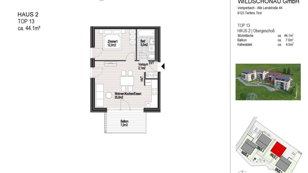 Anzahl Balkone: 1, Balkon-Terrassen-Fläche: 7,00 m², Kellerfläche: 4,50 m², Bundesland: Tirol, 4 Etagen, Wohnungsnr.: Top 13