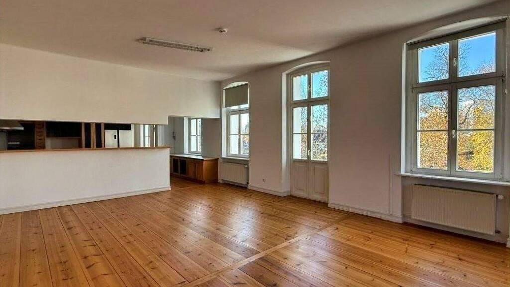 Diese außergewöhnlich großzügige 3-Zimmer-Wohnung im 1. Obergeschoss der Bahnhofstraße 26 überzeugt mit ca. 143 m² Wohnfläche, einem lichtdurchfluteten Wohn-/Essbereich, einer stilvollen Einbauküche sowie einem Balkon mit angenehmem Ausblick. Die Wohnung ist vollständig frei und eignet sich sowohl für anspruchsvolle Eigennutzer als auch für Kapitalanleger, die eine hochwertige, selten angebotene Wohnungsgröße suchen. Der weitläufige Wohnbereich bildet das Herzstück der Wohnung: große Fenster, helle Wandflächen und ein offenes Raumgefühl schaffen eine beeindruckende Wohnatmosphäre. Die angrenzende Einbauküche ist modern ausgestattet und bietet ausreichend Platz zum Kochen und Genießen. Über den Wohnbereich gelangen Sie auf den sonnigen Balkon - perfekt für entspannte Feierabende oder morgendlichen Kaffee im Freien. Ein geräumiges Schlafzimmer sowie ein weiteres Zimmer, das ideal als Homeoffice oder Gästezimmer genutzt werden kann, runden das Raumangebot ab. Das Badezimmer ist großzügig gestaltet, verfügt über eine Badewanne, moderne Fliesen und Tageslicht - ideal für alle, die Wert auf Komfort legen. Das Gebäude wurde regelmäßig modernisiert (zuletzt 2021), wird über eine effiziente Fernwärme-Zentralheizung versorgt und befindet sich in einem gepflegten Gesamtzustand. Das Treppenhaus unterstreicht mit seiner schönen Gestaltung den besonderen Altbaucharakter des Hauses. Die zentrale Lage in der Bahnhofstraße bietet kurze Wege zu Einkaufsmöglichkeiten, Schulen, Ärzten sowie öffentlichen Verkehrsmitteln. Auch Pendler profitieren von der Nähe zum Bahnhof und der guten Anbindung Richtung Prenzlau, Angermünde oder Berlin.
