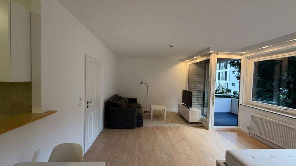 Bereits beim Betreten beeindruckt die Wohnung durch ihre helle, offene Raumwirkung. Große Fensterflächen durchfluten die Räume mit Tageslicht und schaffen ein Wohngefühl von Großzügigkeit und Ruhe. Der Wohn- und Schlafbereich überzeugt durch eine klare Struktur und direkten Zugang zum Balkon - ein privater Rückzugsort mit Blick ins Grüne, mitten in der Stadt und doch angenehm ruhig gelegen.