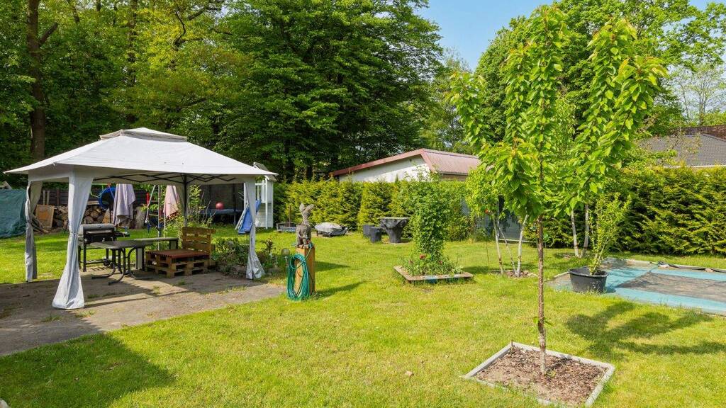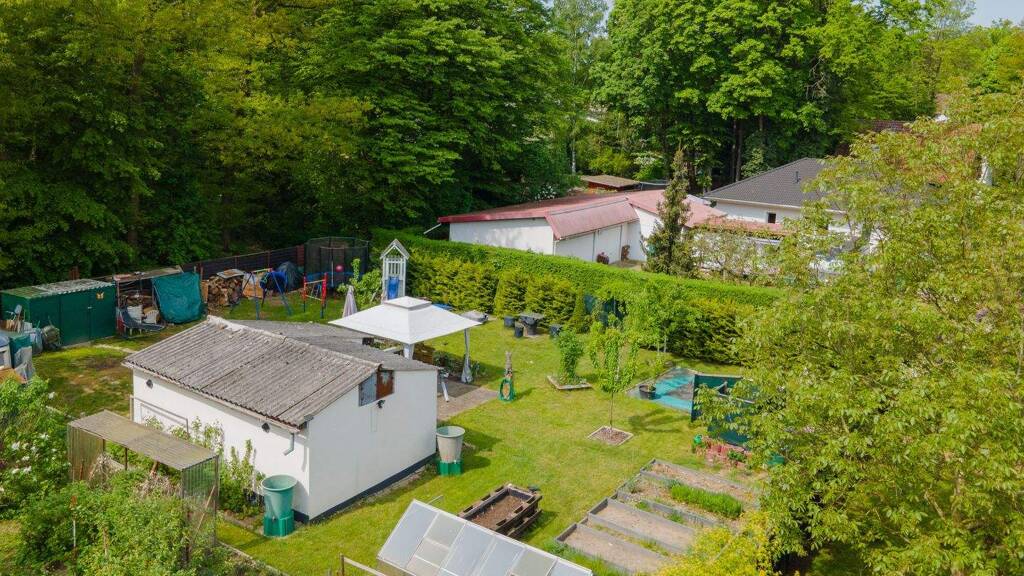 Nach Rücksprache mit dem für Neuenhagen zuständigen Bauamt, hat dieser voraussichtlich weiterhin Bestand. Das Grundstück ist derzeit mit einem kleinen Wochenendhaus bebaut. Außerdem erwarten Sie ein Wohnwagen, ein Gewächshaus, ein Gartenhaus und verschiedene Holzlager. Der sehenswerte Baumbestand entlang der südwestlichen Grundstücksgrenze rundet das naturnahe Gesamtbild dieses zauberhaften Baugrundstückes ab.