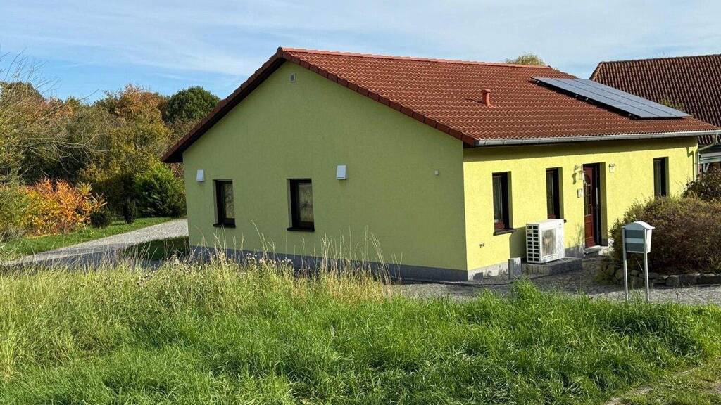 Dieses attraktive Haus präsentiert sich als moderner Bungalow und bietet mit einer Wohnfläche von ca. 91,19 m² und einer noch zu vermessenden Grundstücksfläche von etwa 575 m² ideale Voraussetzungen sowohl für Paare als auch für Familien, die Wert auf zeitgemäßen Komfort und Funktionalität legen. Das Baujahr 2012 steht für eine zeitgemäße Architektur und einen modernen technischen Standard. Die Immobilie befindet sich in einem gepflegten Zustand und zeichnet sich durch durchdachte Details sowie eine gehobene Ausstattungsqualität aus.Der ebenerdige Bungalow verfügt über insgesamt 4 Zimmer, darunter 2 Schlafzimmer, die viel Raum für individuelle Lebensgestaltung bieten. Ein behindertengerechtes Badezimmer und 1 Gäste-WC sorgen dafür, dass morgendliche Abläufe entspannt gestaltet werden können. Die großzügige Raumaufteilung unterstützt ein angenehmes Wohngefühl und macht den Alltag komfortabel.Barrierefreiheit und behindertengerechte Ausstattung sind zentrale Merkmale dieses Hauses. Die breiten Innentüren von 1,01 m gewährleisten einen bequemen Zugang in alle Bereiche. Durchgängig niveaugleiche Flächen und die ebenerdige Bauweise ermöglichen größtmögliche Bewegungsfreiheit und somit bequemes Wohnen für jede Lebensphase.Beheizt wird die Immobilie durch eine moderne Zentralheizung in Kombination mit Fußbodenheizung und Wärmepumpe. Diese Technik sorgt für eine angenehme Wärme und ermöglicht zugleich einen energieeffizienten Betrieb. Eine dezentrale Lüftungsanlage trägt zusätzlich zu einem ausgeglichenen Raumklima und frischer Luft bei - Vorteile, die insbesondere im Alltag geschätzt werden.Das Haus bietet zwei Außenstellplätze: Das Doppel-Carport mit angrenzendem Schuppen stellt nicht nur ausreichend Platz für Fahrzeuge bereit, sondern bietet zusätzlich praktischen Stauraum. Für weiteren Platzbedarf ist ein begehbarer Stauraum im Dachgeschoss vorhanden. Die Kombination aus Carport, Schuppen und Stauraum unterstützt Flexibilität im Alltag und ermöglicht eine geordnete Unterbringung von Geräten, Fahrrädern oder saisonalen Gegenständen.Ein weiteres Highlight der Immobilie ist die großzügige Terrasse mit einer Fläche von etwa 20 m². Sie gewährt einen freien Blick ins Grüne und eignet sich hervorragend für entspannte Stunden im Freien oder gesellige Zusammenkünfte mit Freunden und Familie. Im Hinblick auf Nachhaltigkeit und zukunftsfähige Wohnkonzepte steht ein Photovoltaik-Mietvertrag mit Speicherlösung zum Übergang bereit. Damit eröffnet sich die Option, von erneuerbaren Energien zu profitieren und langfristig Energiekosten einzusparen.Überzeugen Sie sich bei einer Besichtigung selbst von den Möglichkeiten, die dieses Haus bietet. Die gelungene Verbindung aus Komfort, moderner Technik und einer durchdachten Ausführung macht dieses Objekt zu einer attraktiven Wahl für Ihre Zukunft. Gern stehen wir Ihnen für weitere Informationen und Terminvereinbarungen zur Verfügung.