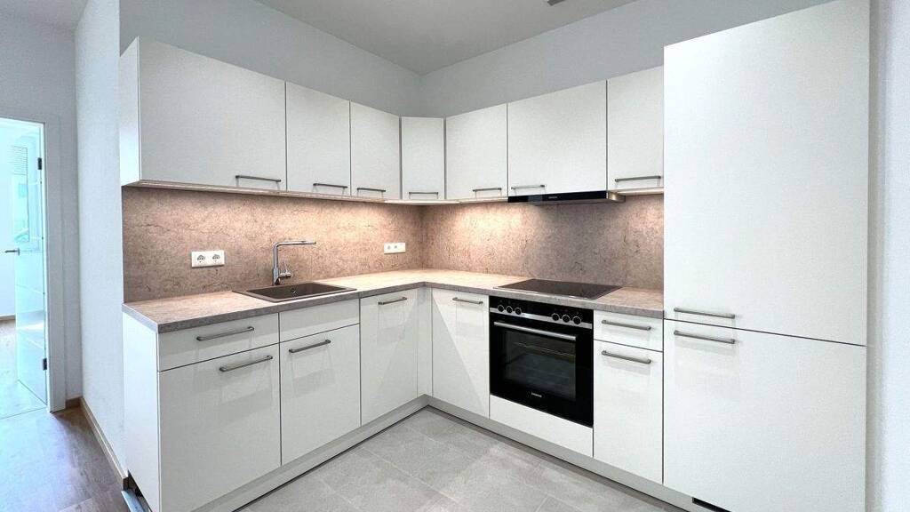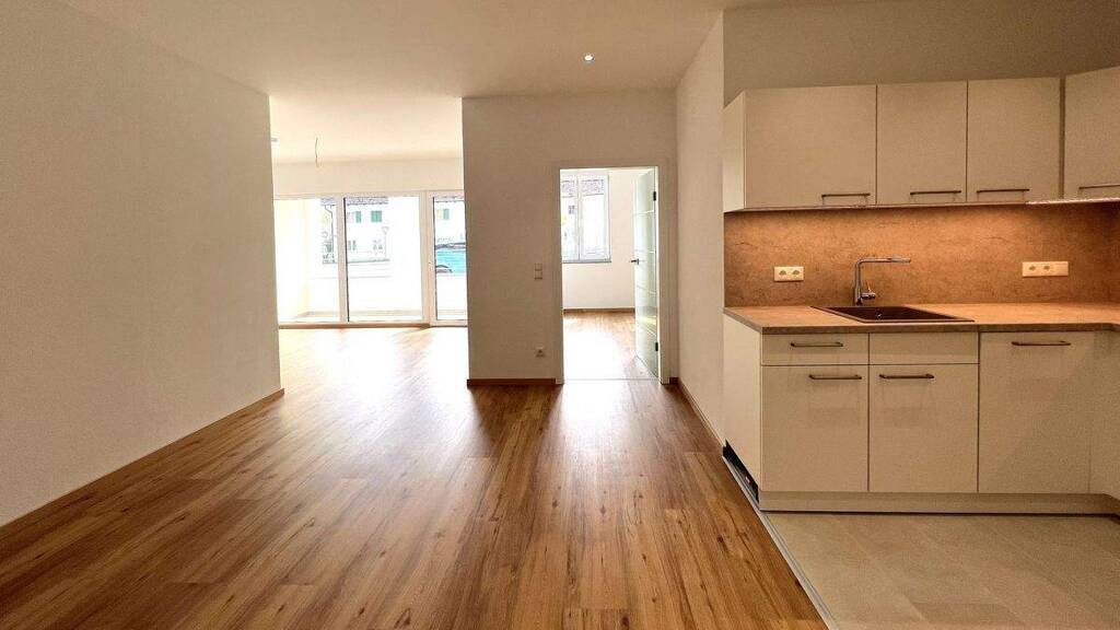 Die Wohnung hat eine gehobene, exklusive Ausstattung: .Moderne Markeneinbauküche mit Elektrogeräten und viel Stauraum .Bad überdurchschnittlich groß und barrierefrei; Waschmaschinen- und Trockneranschluß vorhanden .Fenster (Kunststoff, weiß) mit 3-fach-Verglasung; einbruchhemmend mit UV- und Lärmschutz .Türen: Haustüre (Aluminium weiß, RC 3), Wohnungstüre weiß mit Lärmschutz (RC 2) .Zentrale Lüftungsanlage für jede Wohnung getrennt und Zu- bzw. Abluft in jedem Raum .Fußbodenheizung mit Raumsteuerung .Pflegeleichte und allergenfreie Vinyl- und Fliesenböden .Überdachter Südbalkon .Je Wohnung ein abgeschlossener, großer, eigener Kellerraum .Für jede Wohnung zwei eigene Außenstellplätze im Kaufpreis enthalten