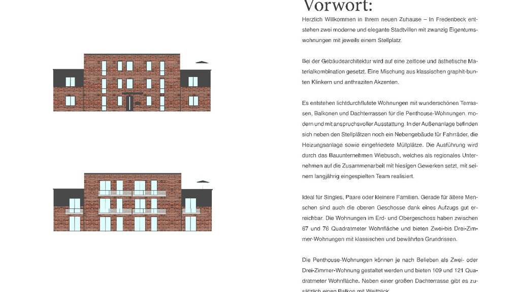 - Maler- und Tapezierarbeiten - elektrische Außenrollläden - Fußbodenheizung, Wärmepumpe - barriefreie Duschkabinen (teilw. rollstuhlgerecht) - Video-Gegensprechanlage - moderne Designböden und Fliesen - Fußleisten - Elektroinstallation - Aufzug - Fahrradabstellraum in der Nebenanlage - Sanitärausstattung: Waschtisch, WC, Duscharmatur, Duschkabine - Innentüren und Drückergarnituren - Außenstellplatz - Effizienzhaus 40 QNG