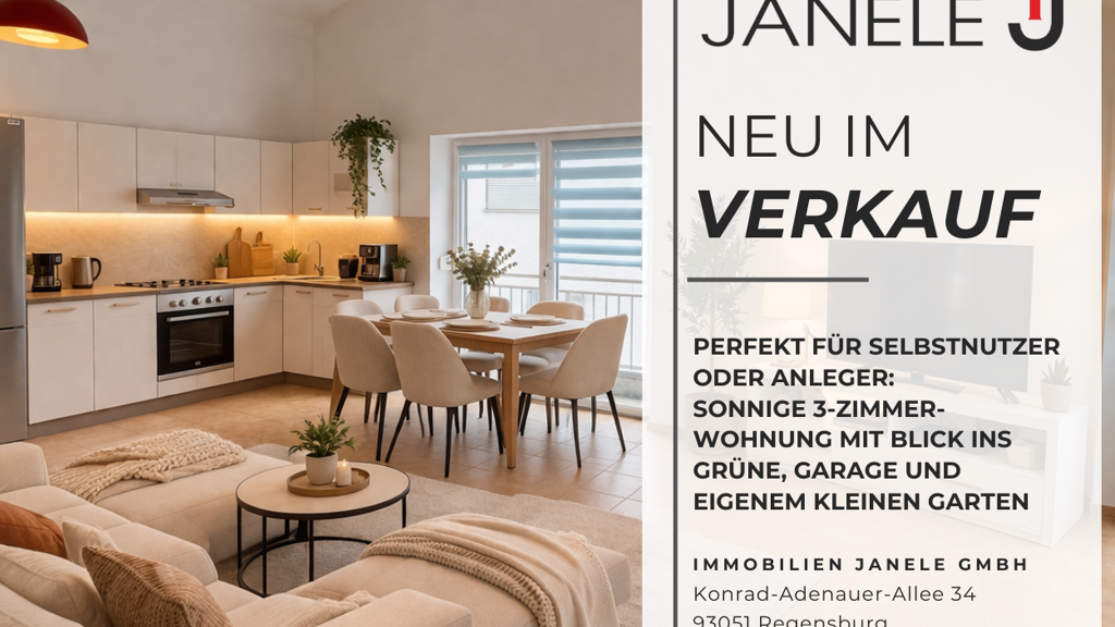Perfekt für Selbstnutzer oder Anleger: Sonnige 3-Zimmer-Wohnung mit Blick ins Grüne, Garage und eigenem kleinen Garten