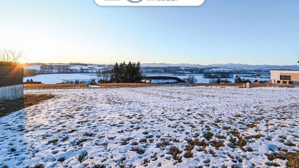 Dieses Baugrundstück vereint eine ruhige Siedlungsrandlage mit freier Aussicht bis in die Alpen.