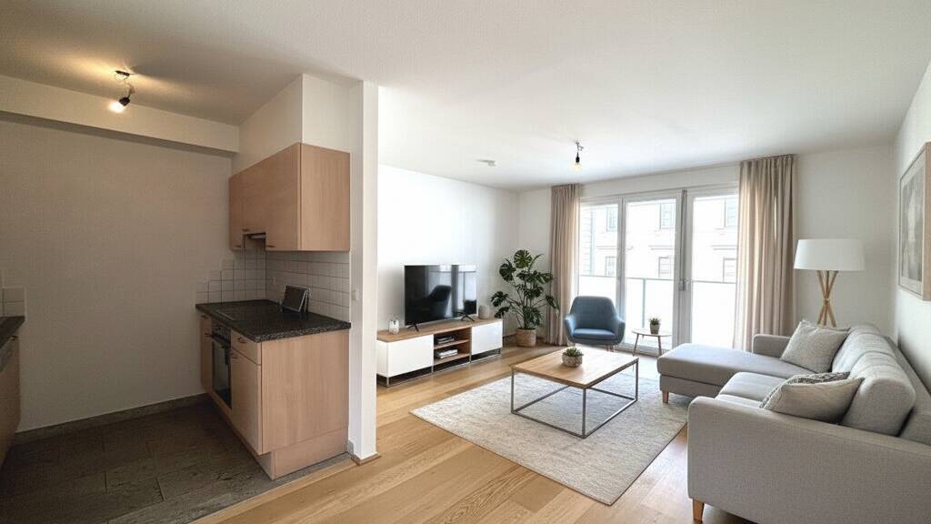 Bei den möblierten Fotos handelt es sich um_ _KI-generiertes/virtuelles Homestaging. Das Objekt wird unmöbliert verkauft, Küche und Badezimmer bleiben im Objekt.