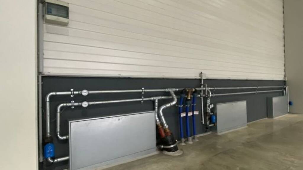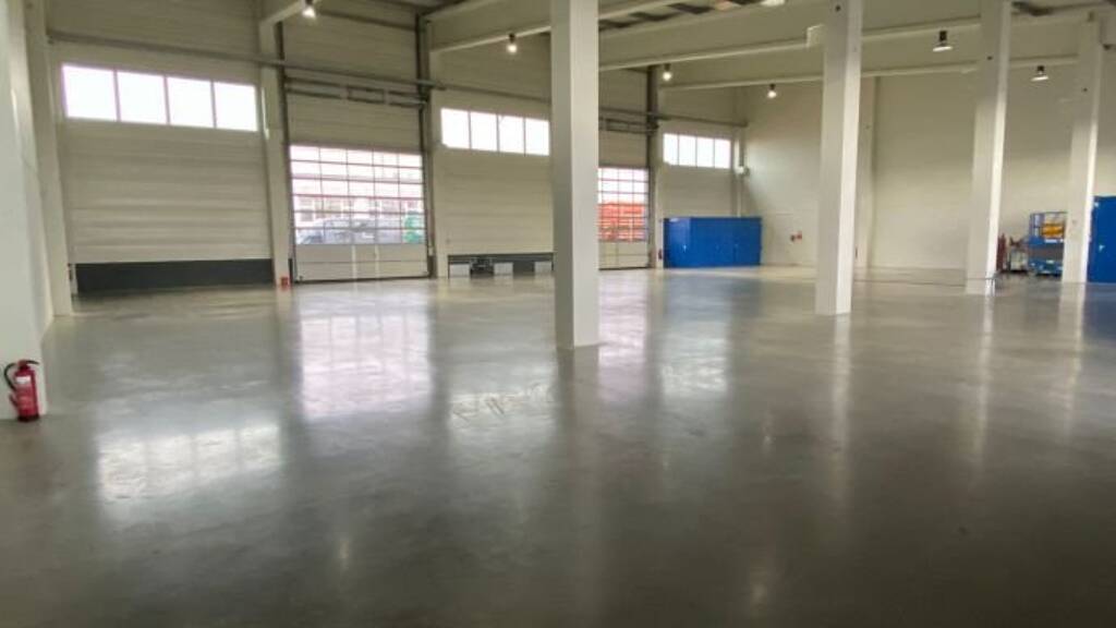 Gewerbehalle BJ 2017 mit 950 qm, teilbar ab 475 qm, mit Sanitärräumen und einem großen Bürocontainer. Halleneinfahrten mit vier großen, gegenüberliegenden Sektionaltoren mit Breite: 5,50m x Höhe: 5,50m. WHG Industrie Betonboden mit Ölabscheider und Schwerlastgeeignet. Grundwassernutzung als umweltfreundliche Energiequelle für die Fußbodenheizung und -kühlung, Umfangreiche Infrastruktur für sofortigen Bezug. Leistungsfähiger 280Ampere Stromanschluss möglich, Warm- und Kaltwasseranschluss, Einbruch- und Brandmeldeanlagen.