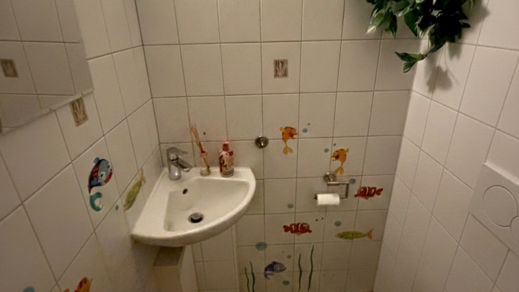 Das Badezimmer ist zeitlos gefliest und mit einer Badewanne, Toilette und Waschmaschinenanschluss ausgestattet. Ergänzend steht ein separates Gäste-WC zur Verfügung, was den Wohnkomfort insbesondere für Familien oder Mehrpersonenhaushalte deutlich erhöht. Ein praktischer Abstellraum innerhalb der Wohnung sorgt zusätzlich für Ordnung und Stauraum.