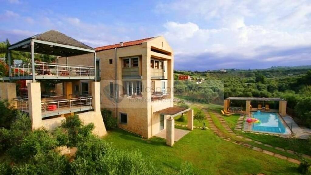 Natur-Steinvilla von 300 m² Wohn-/Nutzfläche auf einem Grundstück von 4000 m² im Jahr 2002 erbaut in Galatas in der Nähe von Chania und nur 600 m vom Strand entfernt.