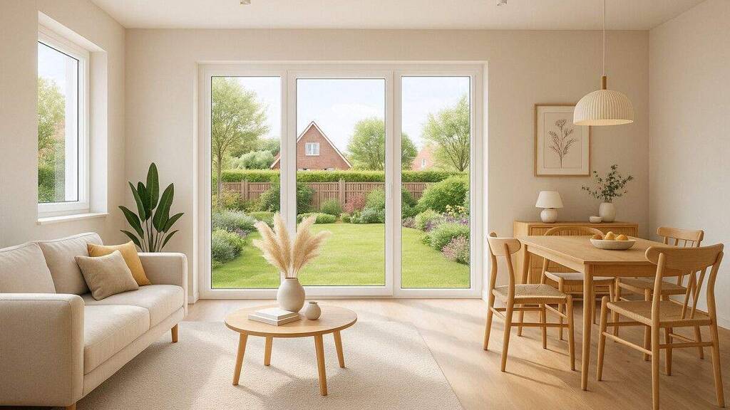 Die Architektur ist modern, klar und auf komfortables Wohnen in einer Ebene ausgerichtet. Große Fensterflächen sorgen für viel Tageslicht und verbinden den Wohnbereich harmonisch mit dem geschützten Garten. Die Raumaufteilung ist so konzipiert, dass sowohl Paare als auch kleine Familien hier ein behagliches Zuhause finden. Zusätzlich bietet das bereits vorbereitete Obergeschoss spannende Gestaltungsmöglichkeiten - perfekt für ein Studio, zusätzliche Schlafzimmer oder ein weiteres Badezimmer.
