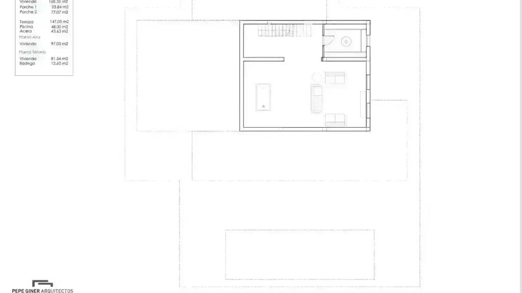 Im Erdgeschoss finden wir einen großen Wohn-Essbereich und offene Küche, Hauptschlafzimmer mit begehbarem Kleiderschrank und Bad, vordere Terrasse mit Zugang zum Pool.