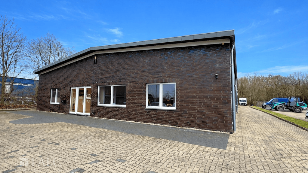 Auch die Außenflächen bieten vielseitige Nutzungsmöglichkeiten: Im vorderen Bereich stehen fünf PKW-Stellplätze für Mitarbeiter und Kunden zur Verfügung. Der hintere Hofbereich ist großzügig dimensioniert und eignet sich ideal zum Rangieren sowie Abstellen eines LKWs und bietet zusätzlich Platz für zwei bis drei Transporter bzw. Sprinter.