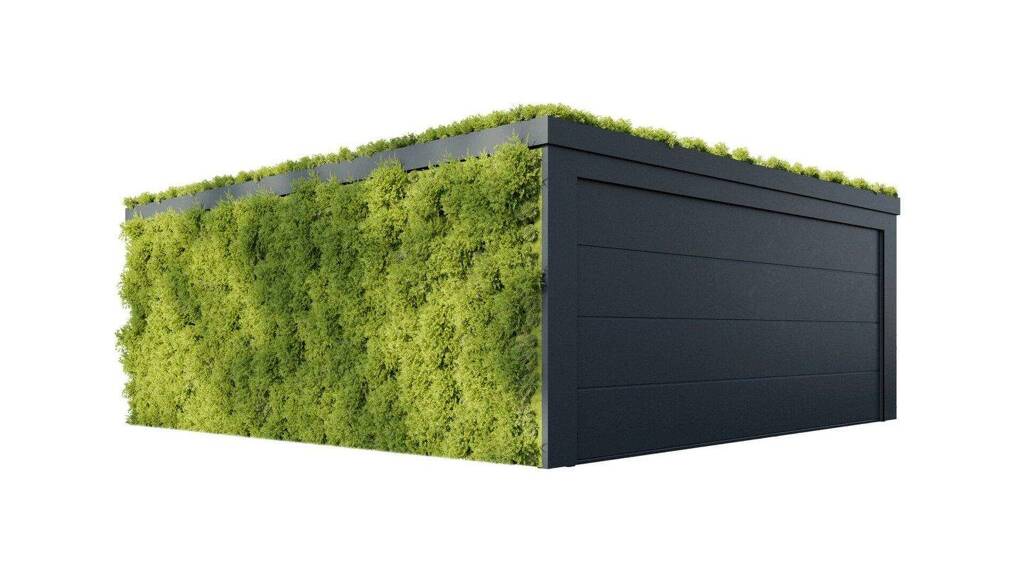 Mit ihrer hochwertigen bepflanzten Fassade mit begrünten Dachrandstreifen fügt sich die Doppelgarage harmonisch in jede Umgebung ein und setzt gleichzeitig einen modernen, nachhaltigen Akzent. Im Inneren überzeugt sie durch ihre durchdachte Bauweise und bietet Platz für zwei Fahrzeuge auf einer Fläche von rund 39 m² (6,5 x 6,0 m).
