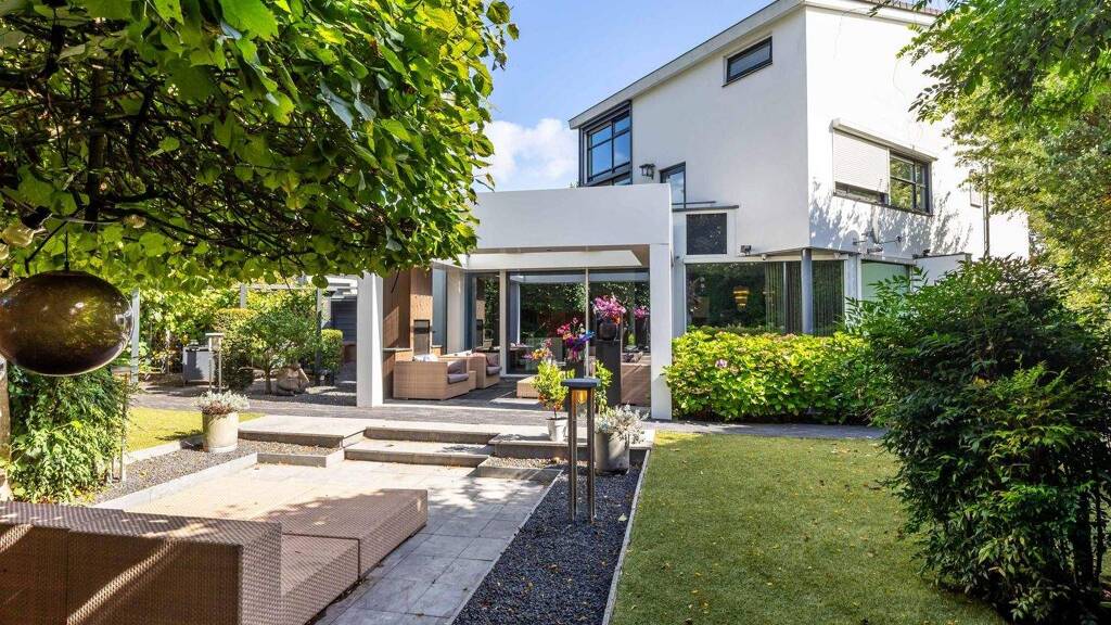 the garden, fully redesigned in 2025, is a true oasis of privacy and greenery, ideally positioned to the south-west. multiple terraces offer different ambiences throughout the day. the veranda, with its lofty ceiling and large roof light, ensures an airy, bright atmosphere.