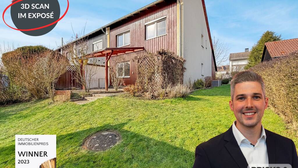 Willkommen in Ihrem neuen Zuhause! Dieses Reihenendhaus überzeugt mit einer durchdachten Aufteilung über drei Ebenen und bietet mit ca. 151 m² Wohnfläche auf insgesamt fünf Zimmern viel Platz für Familien, Paare mit Homeoffice-Bedarf oder alle, die Wohnen und Arbeiten unter einem Dach verbinden möchten. Die Raumstruktur ist klar, funktional und zugleich großzügig angelegt, sodass sich das Haus sowohl im Alltag als auch bei veränderten Lebenssituationen flexibel nutzen lässt. Die Immobilie wurde in massiver Bauweise mit 36,5 cm starken Außenwänden errichtet und vermittelt bereits in ihrer Grundsubstanz ein solides Wohngefühl. Die Energieeffizienzklasse C sowie die im Jahr 2020 erneuerten Fenster unterstreichen den gepflegten und zeitgemäßen Zustand des Hauses. Besonders stark ist die gelungene Verteilung der Wohnfläche über drei Ebenen. Dadurch entstehen klare Bereiche für gemeinsames Leben, private Rückzugsorte und individuelle Nutzungsmöglichkeiten. Die fünf Zimmer bieten ausreichend Platz für Schlafen, Arbeiten, Spielen oder Gäste und lassen sich je nach Bedarf unterschiedlich gestalten. Gerade für Familien ist diese Aufteilung attraktiv, weil sie Offenheit und Rückzug sinnvoll miteinander verbindet. Ein echtes Highlight ist das voll ausgebaute Dachgeschoss mit ca. 21 m². Dieser Bereich erweitert das Haus um eine besonders vielseitig nutzbare Ebene und eignet sich ideal als Studio, Homeoffice, Gästezimmer, Hobbyraum oder als ruhiger Rückzugsort. Durch die separate Lage innerhalb des Hauses entsteht hier ein eigenständiger Bereich mit angenehmer Atmosphäre. Auch das ca. 326 m² große Eckgrundstück ergänzt das Wohnkonzept stimmig. Der Außenbereich bietet Platz für Freizeit, Erholung und Familienleben im Grünen. Blickdichter Heckenbewuchs sorgt dabei für ein hohes Maß an Privatsphäre. Ein Carport direkt am Haus rundet das Angebot praktisch ab und schafft zusätzlichen Komfort im Alltag.