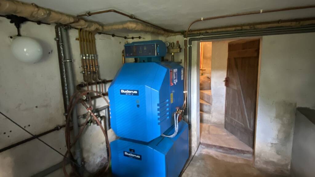 Die zentrale Ölheizung (Buderus 2003)befindet sich im Keller.