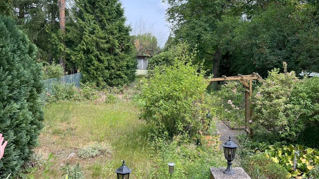 Das weitläufige Grundstück mit 1.276?m² Fläche bietet zahlreiche Nutzungsmöglichkeiten. Neben einer älteren Gartenlaube befindet sich darauf auch ein modernes Gartenhaus aus Holz, dass am Strom angeschlossen und mit einem Blitzableiter ausgestattet ist - ideal als Atelier, Hobbyraum, Spielbereich für die Kinder oder Rückzugsort im Grünen. Die Gartenfläche selbst lädt zum Entspannen, Gärtnern oder Spielen ein und bietet viel Privatsphäre.